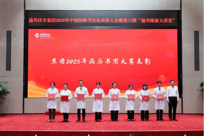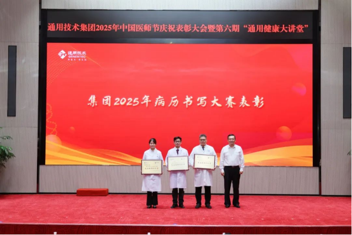 大會表彰了2025年“通用技術集團優秀醫師”,2025年病歷書寫大賽一等獎獲得者及優秀組織單位獎。于旭波、馬可輝以及通用健康公司負責人分別為獲獎代表頒獎,勉勵醫師代表們再接再厲,發揮模范帶頭作用。